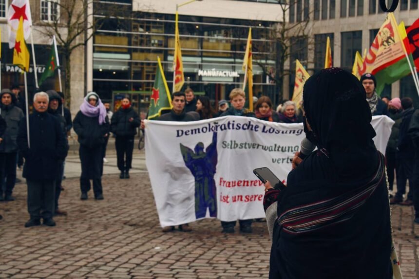 Shali Baloch, the Joint Secretary of Baloch National Movement (BNM) Germany, participated as the party’s representative in a demonstration held at Opernplatz, Hanover, Germany, to mark the “10th Anniversary of the Kurds’ Victory Against ISIS in Kobani” and expressed solidarity with the Kurdish struggle.