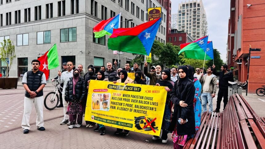 In The Hague, Netherlands, the Baloch National Movement (BNM) organized a protest rally against Pakistan’s nuclear tests conducted on May 28, 1998, in the Chagai region of Balochistan. The protest culminated in a demonstration in front of the Pakistani Embassy.