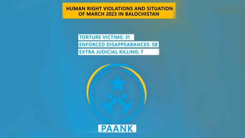 Shaal: Baloch National Movement’s human rights department ‘Paank’ has presented its March 2023 report titled ‘Undeclare martial law in Balochistan.’