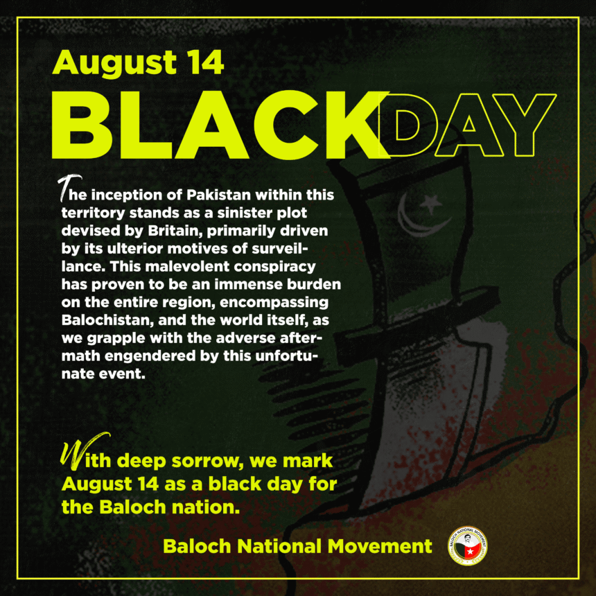 With deep sorrow, we mark August 14 as a black day for the Baloch nation.