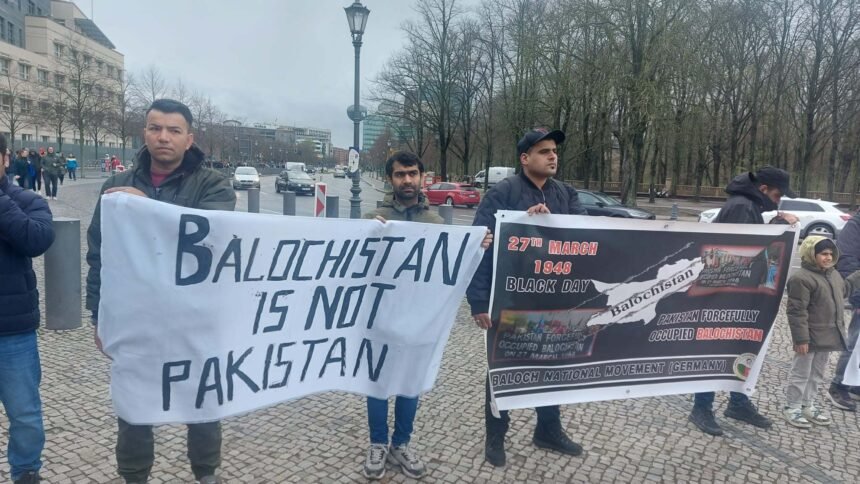 Baloch National Movement’s Germany Chapter staged a protest in Berlin, observing March as the black day when the Pakistan Army marched on March 27th, 1948, and forcibly annexed Balochistan. Since then, the people of Balochistan have rejected Pakistan and resisted Pakistani occupation.