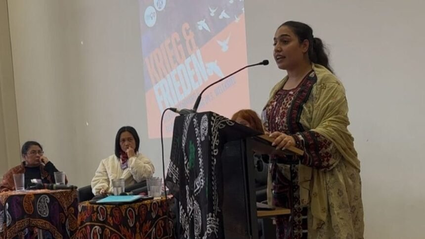 Berlin – Safia Manzoor, Vice President of the Baloch National Movement (BNM) in Germany, addressed the Women’s Conference for Peace, where she spoke about the pivotal role of Baloch women in the ongoing struggle for justice and human rights in Balochistan.