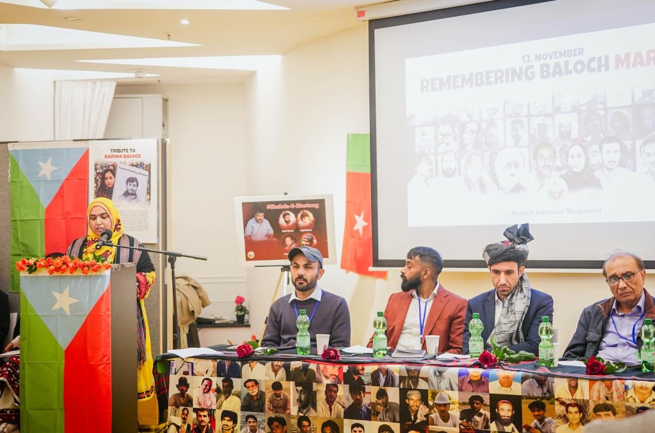 بلوچ نیشنل موومنٹ (بی این ایم ) جرمنی چیپٹر کی نائب صدر صفیہ بلوچ نے 13 نومبر، بلوچ شہداء کے دن کے موقع پر برلن، جرمنی میں منعقدہ بی ای ین ایم کے سیمینار سے خطاب کرتے ہوئے شہداء کی قربانیوں کو خراج تحسین پیش کرتے ہوئے کہا کہ ان کا لہو آج بھی ہماری رگوں میں رواں ہے۔